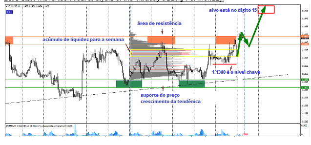 Há uma razão para tal flat na faixa de 1.1300 - 1.1450. Assim que houver uma oportunidade para o preço sair dessa faixa, pode-se esperar um forte crescimento.