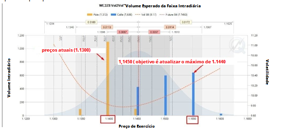 Se considerarmos o intervalo diário de ontem, em que o nível máximo de chamada está em 1,1400, e compará-lo com o interesse aberto do contrato mensal, teremos um nível muito forte de 1,1400, a partir do qual é possível abrir posições curtas .