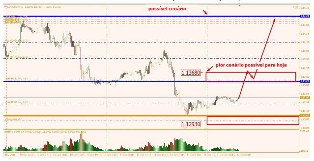 Na faixa de 1.1360, há uma área de baixos volumes. Esse intervalo deve ser testado.