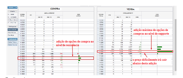Ao nível de 1.1400, existe um acréscimo bastante significativo de opções de venda no montante de 1.574 novos contratos que se tornarão claramente um forte nível de suporte, uma vez que os vendedores destas opções não estarão interessados em baixar o preço abaixo deste nível.