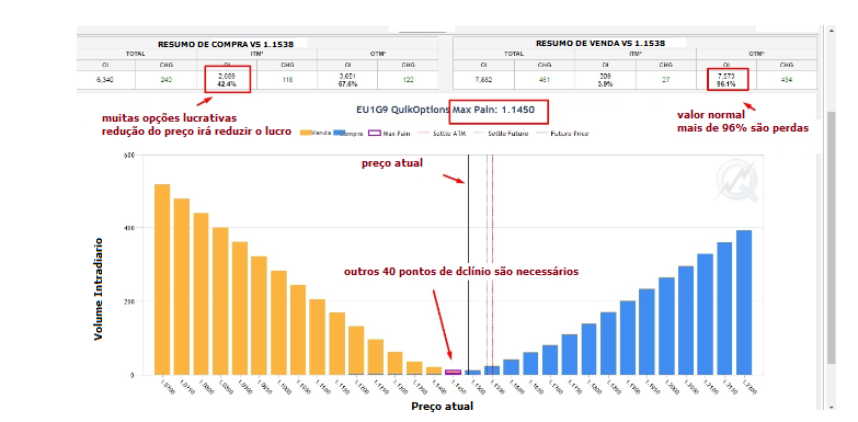 Os juros máximos das opções de venda estão no 13º valor do preço futuro / 1,1250 no preço forex.
