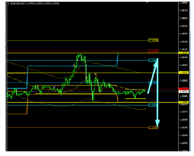 Com o rompimento de 1.1395, espera-se que desça e suba para o alvo de cerca de 1.1420.