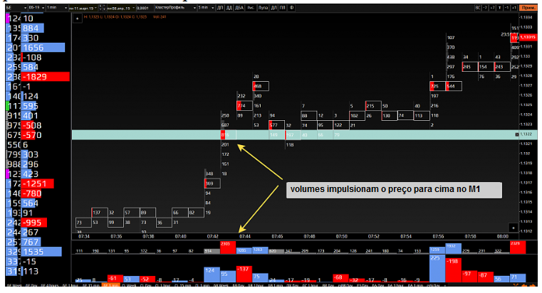Embora, deixe-me mostrar, porque acredito que aqueles eram compradores. Mesmo assim, eles foram parados. Ontem mostrei como os volumes empurraram o preço no M1 dentro de 1291-1315 (1225-1249 no Forex). Era uma situação típica quando a demanda superava a oferta, considerando a ruptura no M1. Existem 816 contratos em 1322 (1256 no Forex). Portanto, este é um ponto número um da possível rompimento.