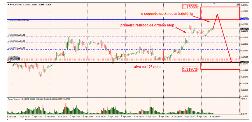 Acima de 1.1333, haverá o cancelamento da tendência de baixa da primeira venda.