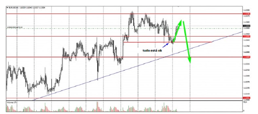 Apesar de um movimento tão pequeno, o par conseguiu atingir o limite inferior - 1,1290 + -.