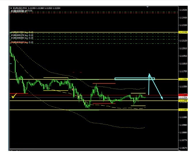 O movimento descendente continua em vigor. Precisamos pegar uma reversão para baixo. Então vamos descobrir como fazer isso. Eu vou te dizer em que condições haverá a tendência de alta, de acordo com a análise técnica. Primeiro, precisamos transformar o M15 no dia para poder recuar. Existe um indicador branco no gráfico, este é o primeiro passo. Inicialmente, o M15 deve atualizar a alta de ontem de 1,1154. Mas isso ainda não é uma reversão, apenas um recuo. O recuo deve ser de pleno direito, com o desenvolvimento para o lado positivo. Eu destaquei tudo com setas no gráfico. Depois de fazermos um recuo completo para o lado positivo, devemos atingir o nível de 1,1160. No H1, o nível de 1,1160 confirmará a tendência de alta, mas isso não significa uma reversão, porque após a confirmação, devemos recuar para 1,1120 e 1,1130. O recuo descendente nos mostrará o poder de touros e ursos. Se os níveis de 1.1120 e 1.1130 resistirem e nos derem um salto, voltaremos para cima. Nesse caso, a reversão pode ser considerada concluída. Até que façamos tudo o que descrevi, a tendência de alta estará em questão. Então vamos adaptar a situação. Se as condições forem criadas, começaremos a nos preparar para lutar.
