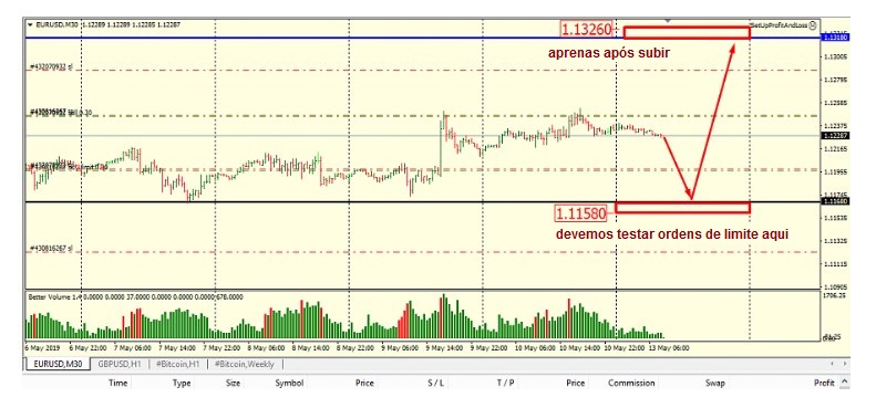 Se considerarmos o nível de compra importante mais próximo, está no preço de 1,1350.