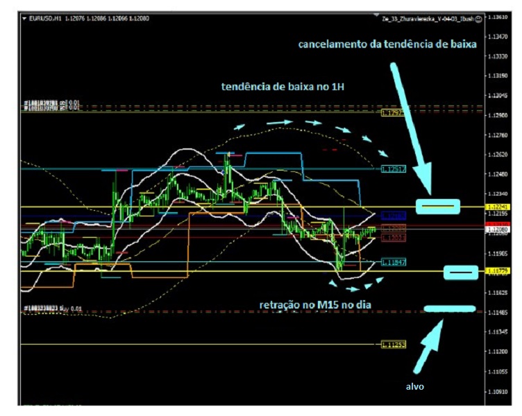 M15 é direcionado para cima dentro do dia, isto é, nós recuaremos do lado negativo. Espero uma tendência de queda. O alvo é 1.1160. O cancelamento da tendência de baixa está no rompimento de 1.1224. Como planejo, iremos para baixo quando a sessão americana começar.