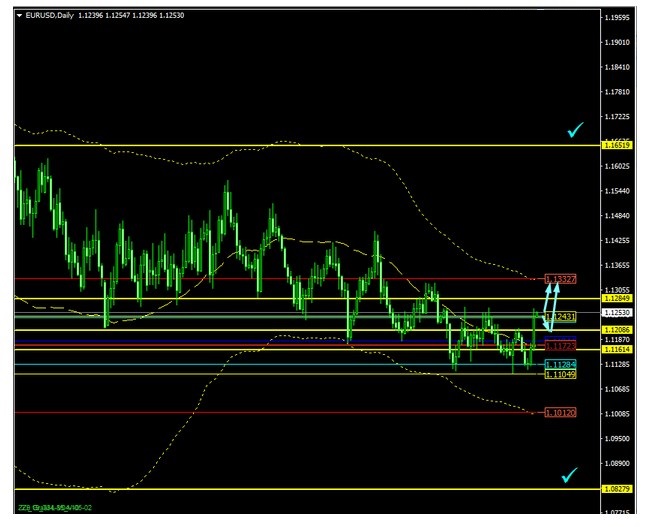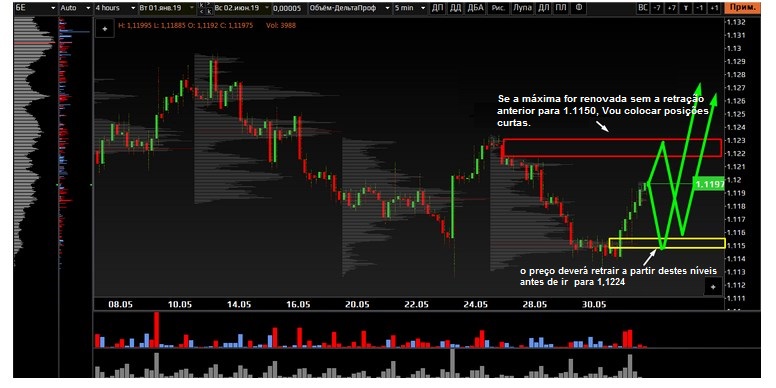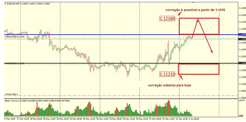 Quando o par chegar a 1.1215, uma tendência se tornará de alta, para que possamos posicionar posições longas com alvo de 1.1280-1.1320.