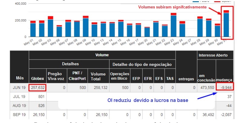 Se dermos uma olhada no contrato de setembro, podemos ver que o interesse aberto aumentou também.