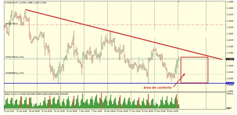Quando o preço está de volta em 1,1140, podemos comprar.