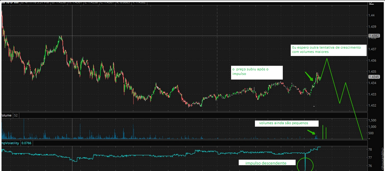O delta é descendente, enquanto a tendência é claramente de alta. Eu vejo vários cenários:
