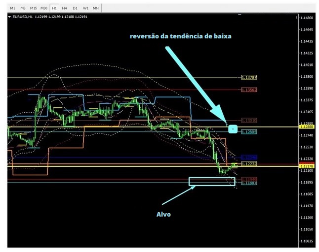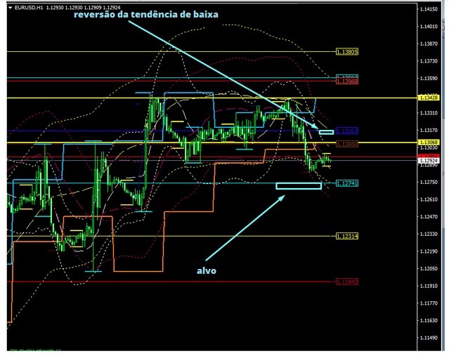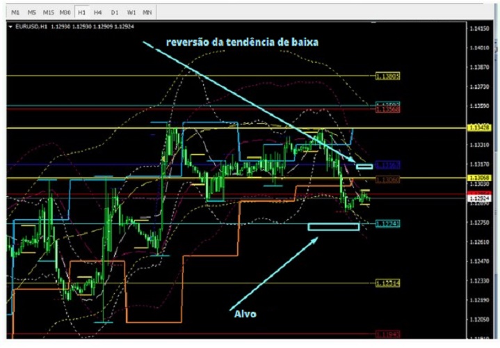 Negociação intradia. O alvo está em 1.1250-40, uma reversão é possível ao atingir 1.1300.