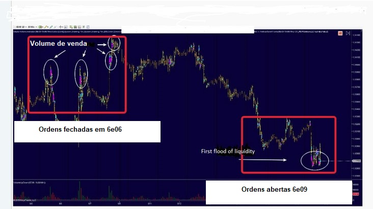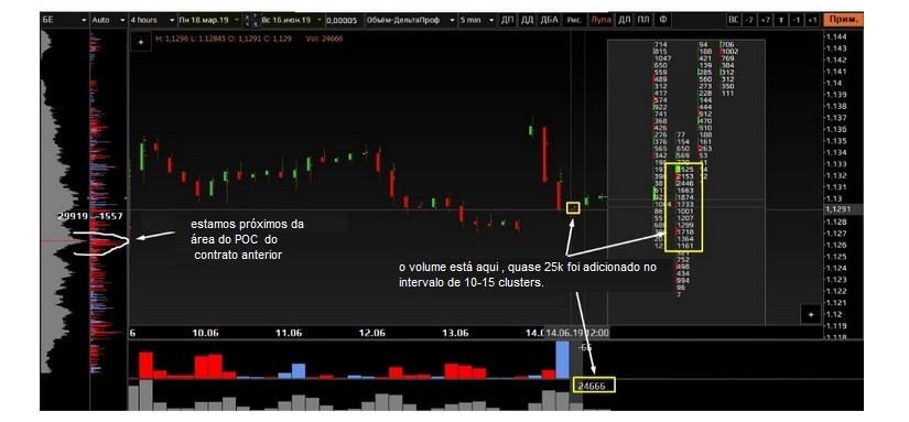 O bom dos clusters é que eles exibem claramente o que está acontecendo. O primeiro volume é o dos contratos de junho. O segundo volume é o dos contratos de setembro. Então, essas são diferentes. A primeira impressão foi de cerca de 70.000. Para o euro, é um sinal sério para a entrada no mercado, que deve ser imediata. No entanto, traders não mostraram resposta. Eles violaram o esquema de venda. Por outro lado, eles não permitiam que os compradores dominassem o mercado porque os contratos expiraram. Ontem, o mercado acabou encontrando alta liquidez para os contratos de setembro. Parece que tudo está começando de novo. A maioria dos contratos vem no primeiro estágio. O segundo estágio para a compra é geralmente abaixo do primeiro. As posições de venda geralmente são abertas acima da primeira. De qualquer forma, essas posições podem ser um pouco mais baixas. Tudo poderá acontecer no mercado.