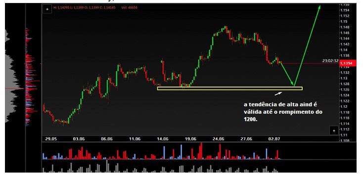 Em qualquer caso, no gráfico diário, a tendência ascendente ainda está em vigor até um rompimento de 1200.