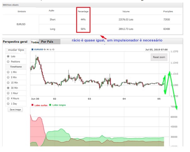 Quanto às posições dos traders, pode-se observar que 86% deles são compradores.