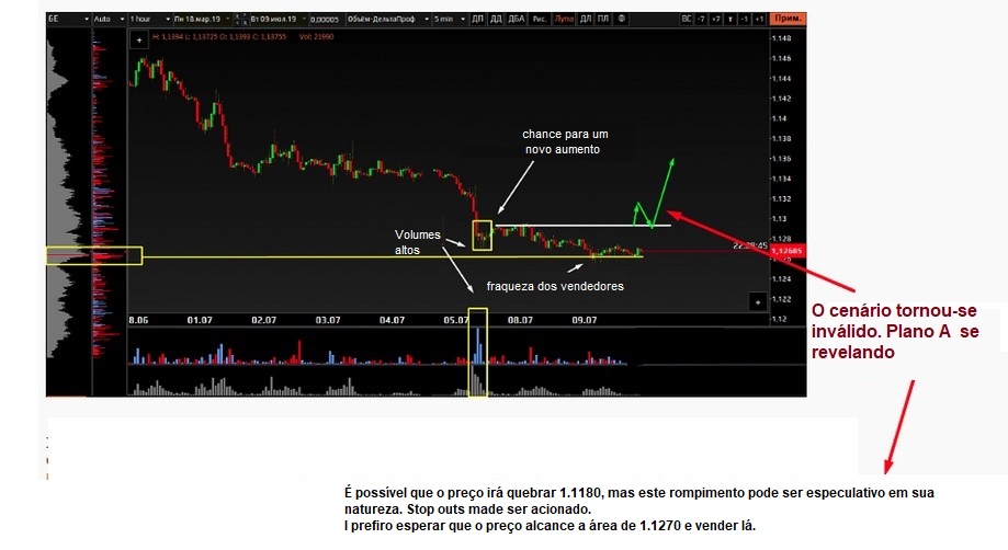 Ontem eu esperava que o preço testasse novamente o lado negativo, mas isso não aconteceu. O plano A se desdobrou depois que o preço atingiu o nível de 1.1206.