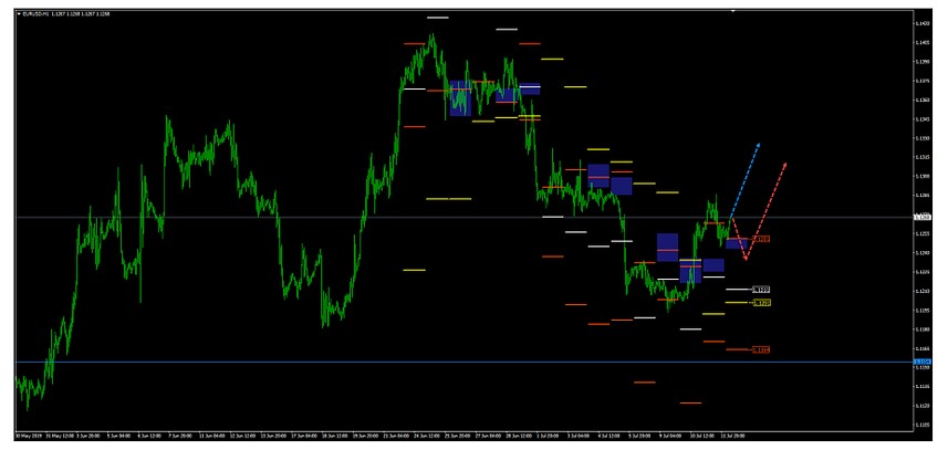 Quanto aos níveis, para criar um sinal de venda, é necessário aguardar um aumento para 1.1255 e a formação de uma falsa fuga.