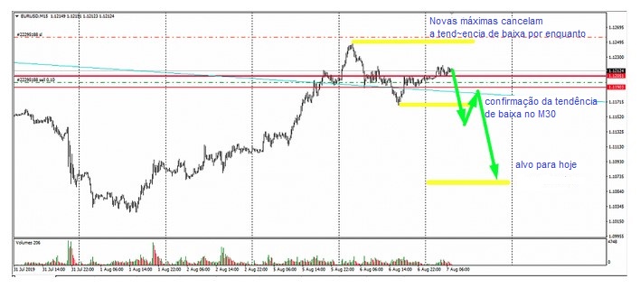 É importante superar a área dos compradores de ontem, 1,1190-1,1170, e o caminho ficará claro.