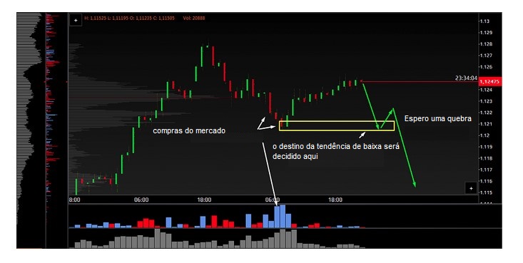 Se o crescimento era esperado, esse rompimento deverá ser obrigatório. Além disso, a baixa da vela em 1.1087 não deveria ter sido quebrada.