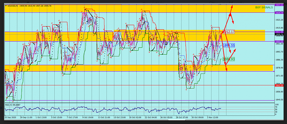 Hoje, o ouro é negociado em uma faixa relativamente estreita. No momento, o preço está próximo aos níveis de fechamento de segunda-feira. Sendo um ativo porto-seguro, o ouro está em demanda entre os investidores antes das eleições presidenciais nos Estados Unidos. Além disso, o ouro está se fortalecendo devido a um aumento drástico no número de novos casos de coronavírus. Países em todo o mundo estão implementando restrições de bloqueio. Na primeira metade do dia, espero que ocorra alguma correção de baixa. Em geral, o preço provavelmente apresentará tendência de alta hoje. O ouro está sendo negociado sob o controle dos touros. O ponto de Pivô estimado está no nível de 1875. Vou comprar o instrumento acima dessa marca com as metas nos níveis de 1915 e 1935. Alternativamente, o ouro pode retomar seu movimento descendente, estourar em 1875 e se consolidar. Nesse caso, o preço pode cair para o nível de 1855 ou até 1845.