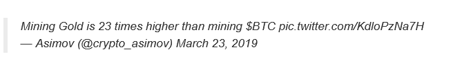 Um tweet revela que minerar Bitcoin pode custar até 23 vezes menos que minerar o ouro. De um lado temos a criptomoeda mais famosa do mercado, e de outro temos o mineral mais cobiçado do mundo. O que os dois possuem em comum são a sua alta capacidade de reserva de valor. No caso do “ouro digital”, obter a criptomoeda pode ser bem menos oneroso que procurar o ouro através da exploração mineral.