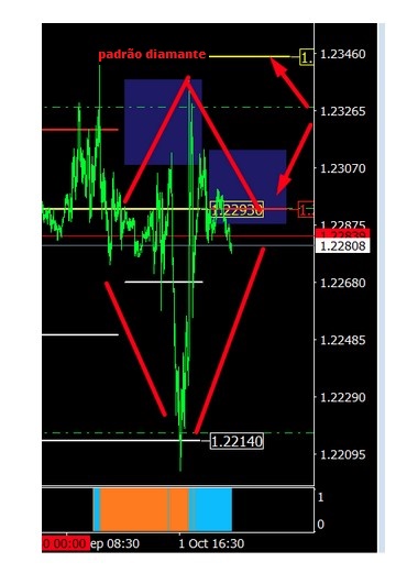 Vamos começar com o padrão de diamante - um padrão de gráfico de reversão. Existem alguns detalhes, mas a partir da marca mais baixa, o preço só pode subir.