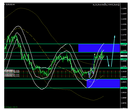 Uma das opções implica que o preço vai atingir uma nova alta em meio à notícia, descer para a área de apoio em 1.1072, em seguida, quebrar este nível, e ir para 1.1030, para fechar o débito.