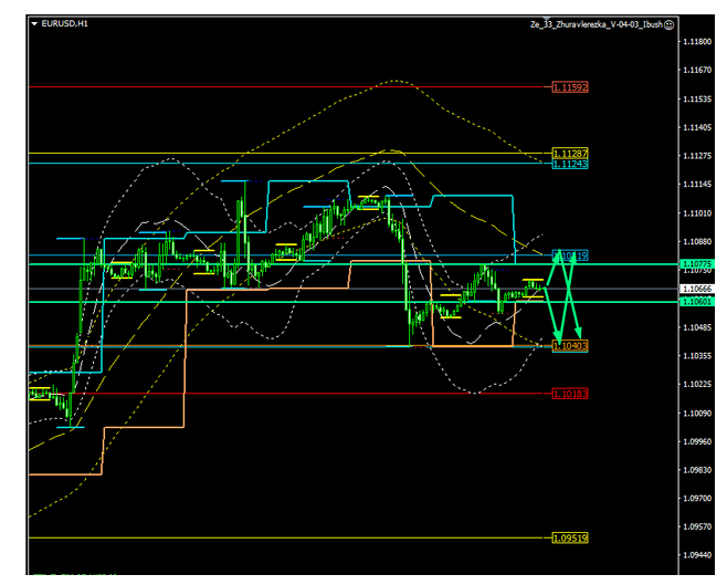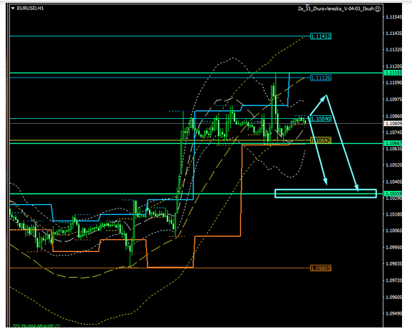 Os alvos são 1.1050 e 1.1030. Espero um movimento descendente.