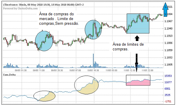 Como podemos ver na tela, todo o decréscimo foi vendido no mercado, e não é surpresa que, muitos até mesmo aqueles que olhavam para o norte já mudaram seu curso para o sul. Mas essas vendas também foram "compradas" pelas ordens de limite. Mas eu também gostaria de destacar que o intervalo (está sublinhado com um retângulo preto na tela) - este é o momento em que eles negociaram parcialmente, no intervalo inferior e entre os dois intervalos. Em geral, o ponto é que o preço estava quase no flat, enquanto o delta estava caindo, então eles coletaram os vendedores. Aparentemente, eles foram "conduzidos" para baixo indo para o norte. Bem, vamos olhar para mais uma tela, onde esses intervalos são destacados: