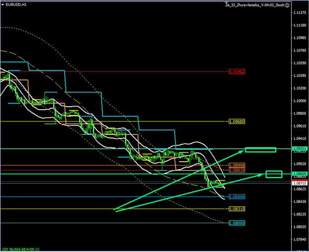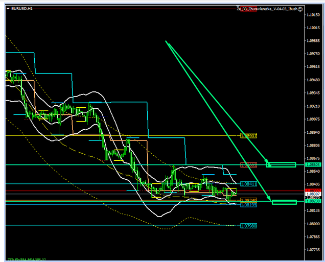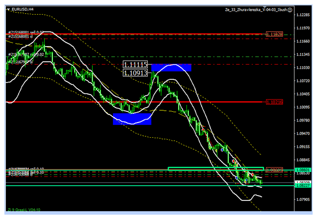 Ontem, houve uma expansão, ou seja, o preço rompeu tanto o nível superior como o inferior, como normalmente acontece após as expansões. A quebra indica uma direção. Por enquanto, estamos abaixo de 1,0885.