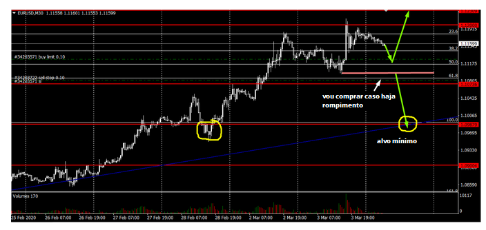 E estou pronto para comprar novamente. O nível para abrir um negócio de compra é de 1,1125, enquanto uma ordem de stop loss deve ser colocada no nível de 1,1175.