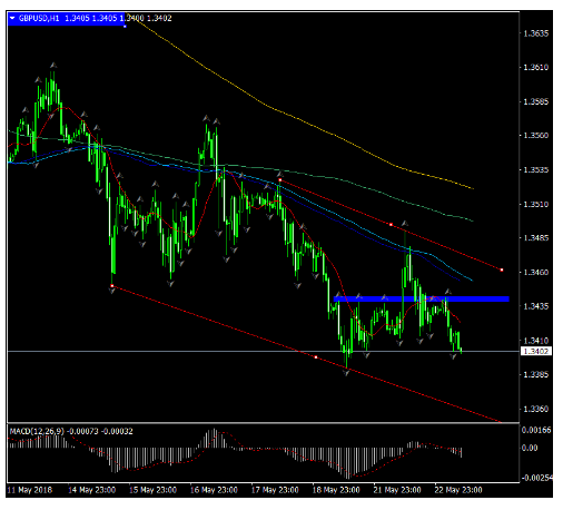 Os indicadores de sinal já forneceram sinais de venda, por isso, coloquei uma negociação curta no GBP com o nível stop além do limite superior.