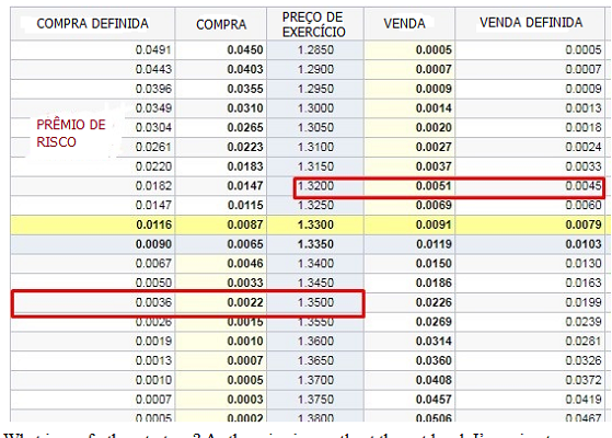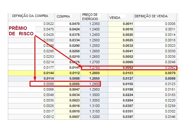Ao nível de preço de 1,2750 em opções de venda, o prêmio de risco para hoje é de 62 pontos.