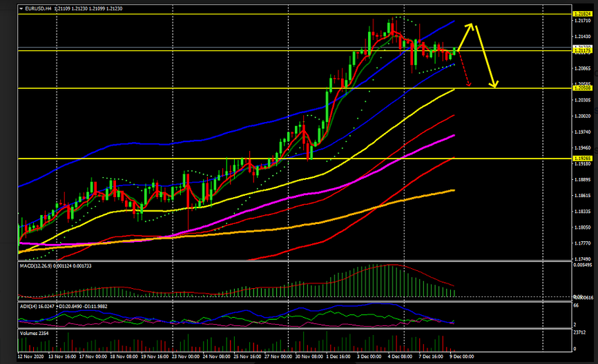 EUR / USD ainda está sendo negociado a 1,2121