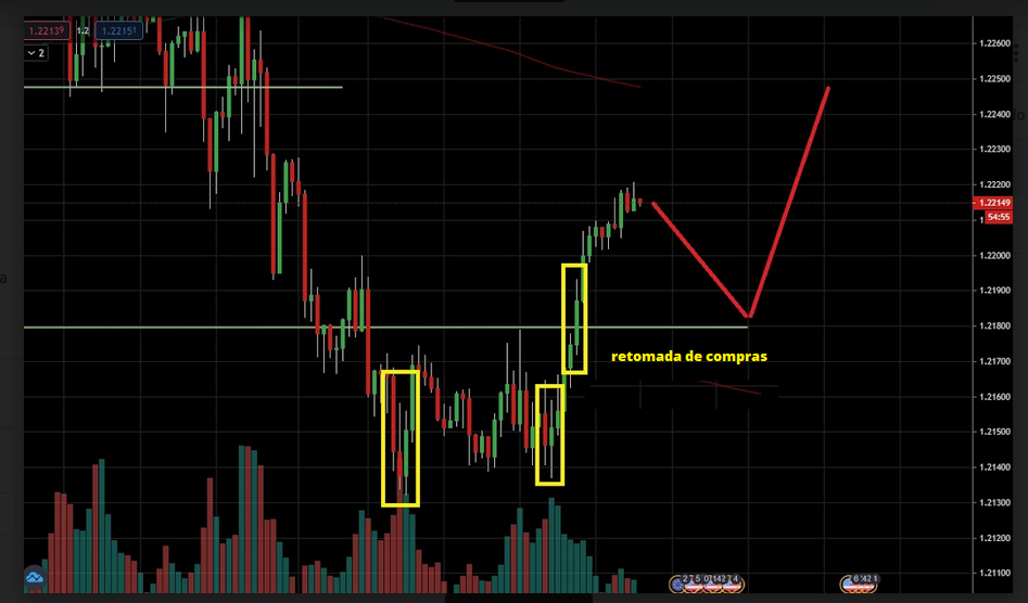 Portanto, preciso esperar que o preço mude e negocie acima desta linha vermelha.