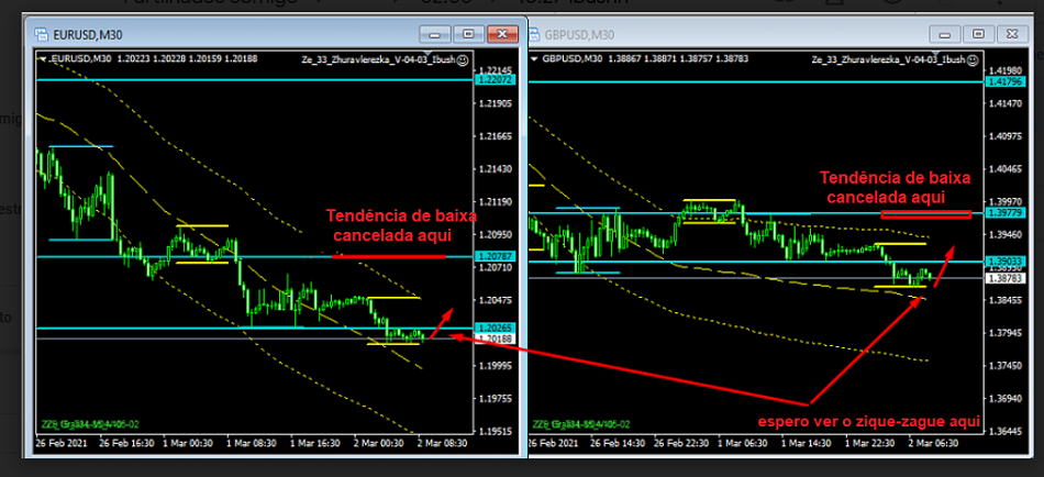 Quando o preço virar para cima no gráfico 1H, é provável que o par retome seu movimento de alta.