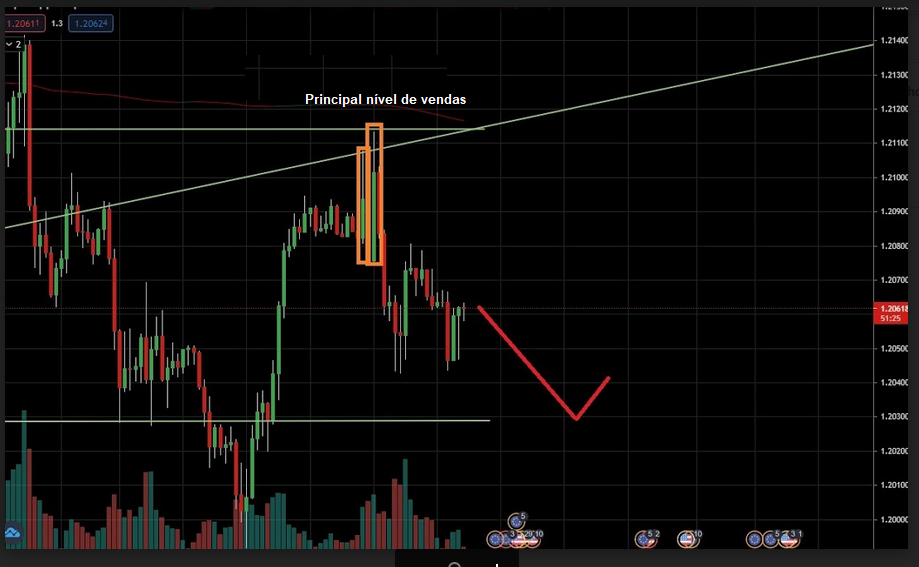 EUR/USD suba cerca de 10 pontos e depois volte ao nível 1,2050