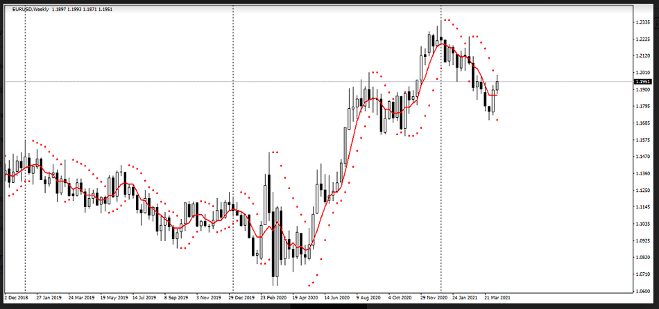 As médias móveis filtram os sinais fornecidos pelo indicador Parabólico. Se mostrarem direções diferentes, há incerteza no mercado e a negociação é arriscada.