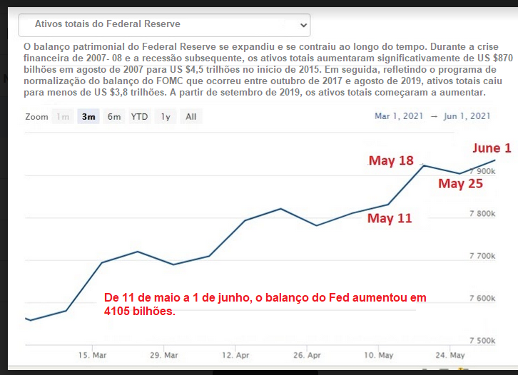 No entanto, é improvável que tais declarações do secretário do Tesouro dos EUA afetem a política do Fed de imprimir dinheiro. O regulador continua a criar dinheiro para os mercados no mesmo nível, sem qualquer alteração. De 11 de maio a 1.º de junho, o balanço do Fed aumentou em US $105 bilhões.
