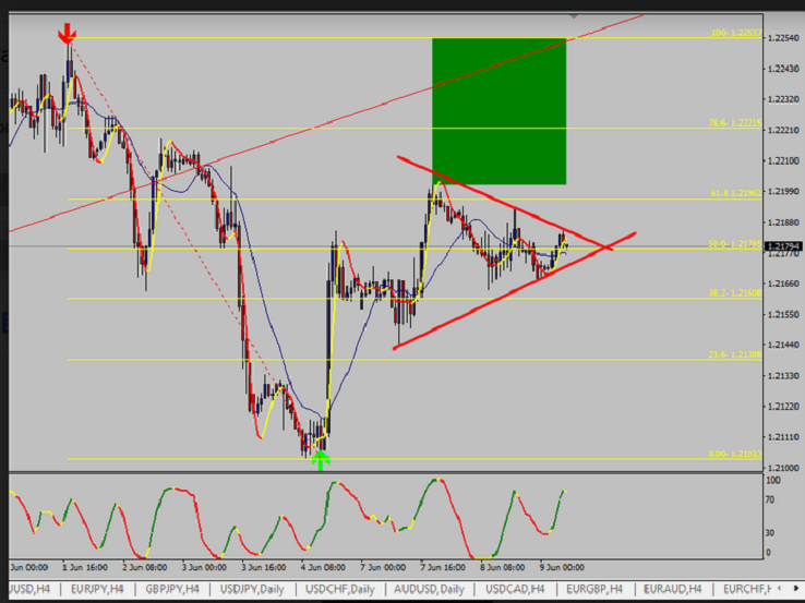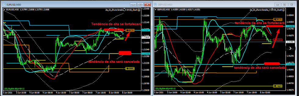 EUR / USD estão sendo negociados em tendência de alta em 08 de junho de 2021.