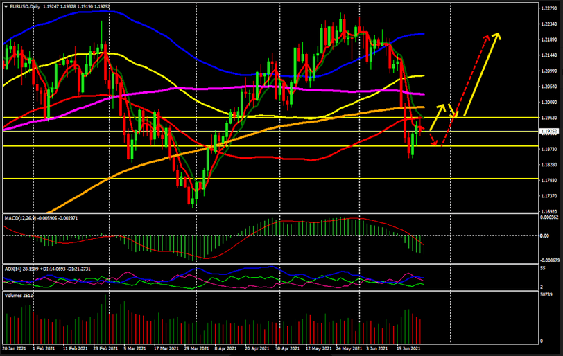 EUR / USD, - perspectivas para 23 de junho de 2021.