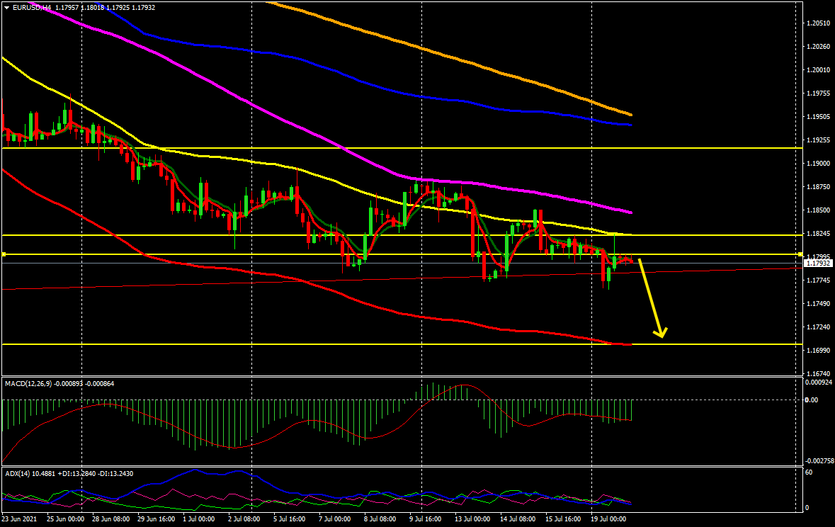 Ontem, o par euro / dólar recuou. Agora ele precisa retomar sua tendência e descer para o nível de 1,1800.