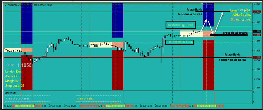 Hoje, o preço abriu em 1.1846. Com uma faixa diária de 61 pips, o limite superior parece ser 1.1907, e a inferior é 1.1785. Portanto, devemos nos concentrar nestes níveis.