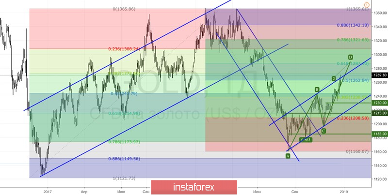 Tecnicamente, o rali do metal precioso na direção do alvo em 200% no padrão AB = CD continua. Corresponde a US $ 1.290 a onça. A situação é controlada pelos touros, por isso faz sentido usar reversões para formar posições longas.