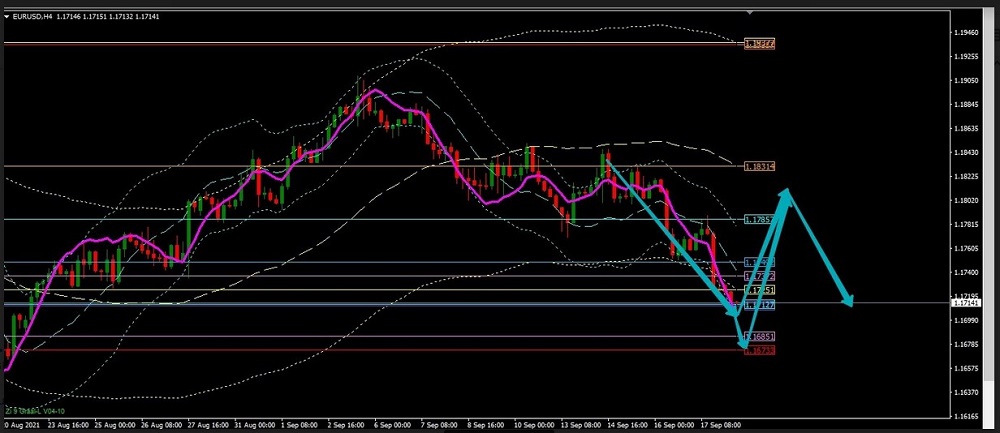 O preço está sendo negociado no nível 1,1725 e há a possibilidade de que possa diminuir para 1,1650 ou em 75 pips.