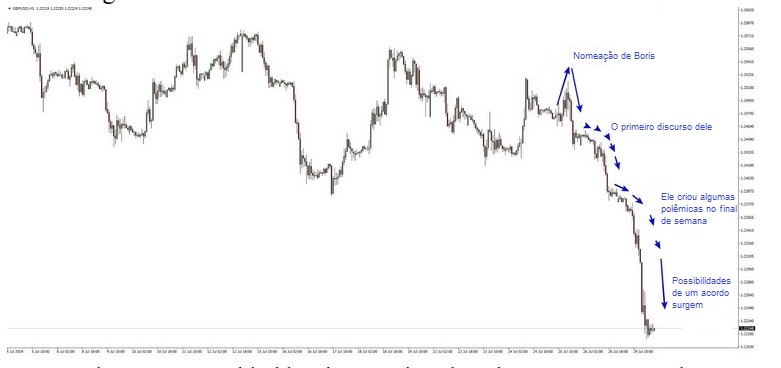 Aqui está um gráfico mostrando a aventura da libra contra o pano de fundo do jogo de Boris: