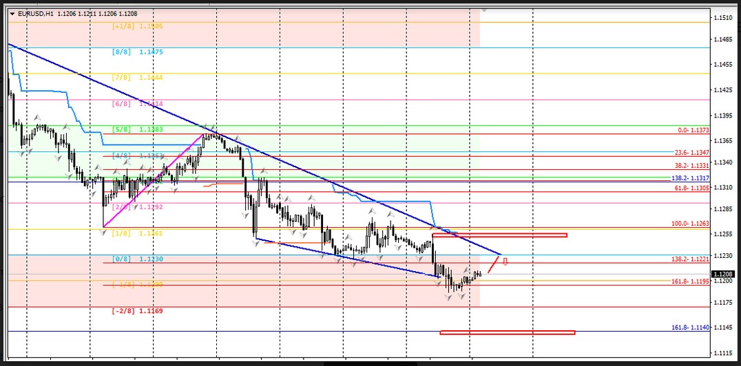 Eu tive a área de Fibo 161,8 (1,195) como meu alvo. Apesar da minha posição comprada em aberto, dificilmente esperava que o preço atingisse este nível. Tecnicamente, foi possível e fechei minha posição de negociação com algumas perdas. De qualquer forma, posso abrir uma nova posição se o preço atingir níveis mais baixos.