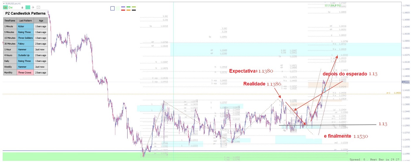 Por outro lado, podemos tentar vender perto da marca de 1,1385, mas com um Stop Loss obrigatório dentro da área de 1,14, ou seja, não inferior a 1,1420.