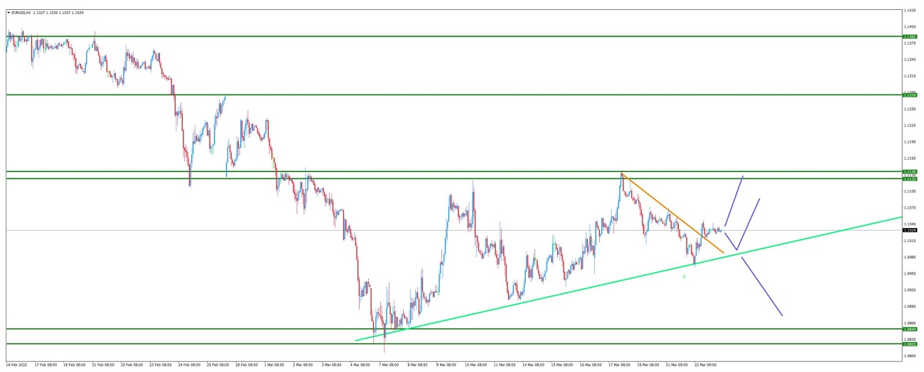 - A tendência de alta continuará se o preço subir acima do nível de 1.1065. Neste caso, o nível de 1.1136 pode ser visto como um alvo;